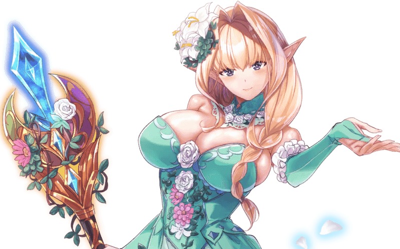 エスティリエルは精霊魔法の使い手。 といっても、ドレスのせいで動きづらいのか、アタック系というより、ヒーラー系、バッファー系である。 普段よりもきっと可憐さに磨きが掛かっているに違いない。 |